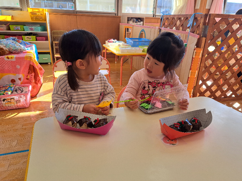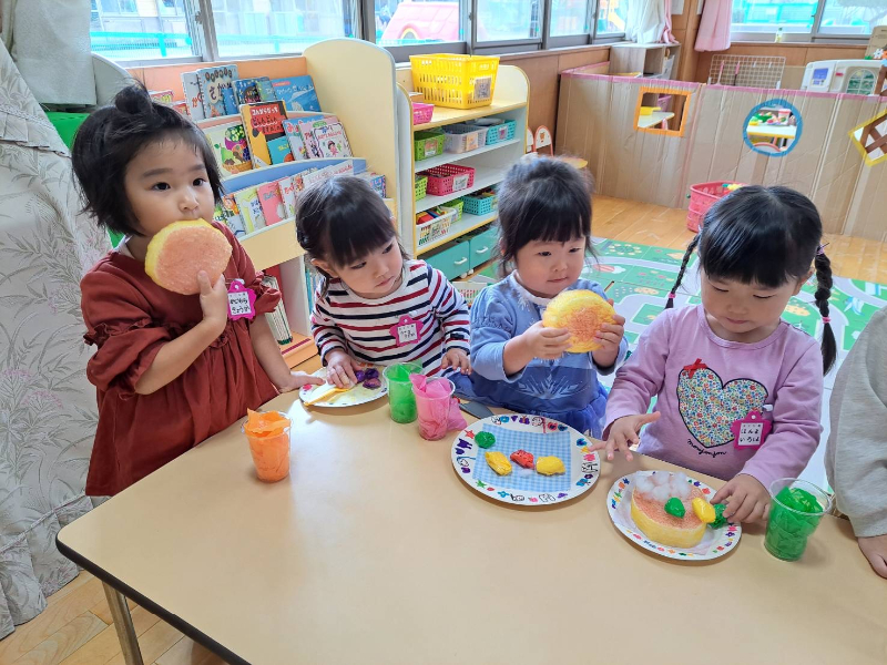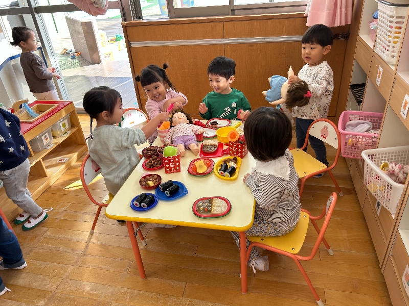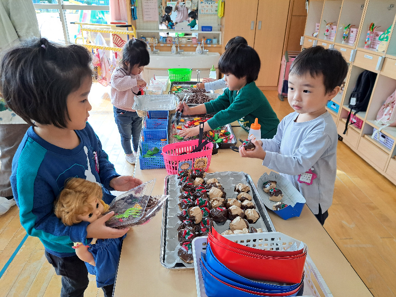 先生や友だちと一緒にごっこ遊びやお店屋さんになって楽しんでいる様子を紹介します![]()