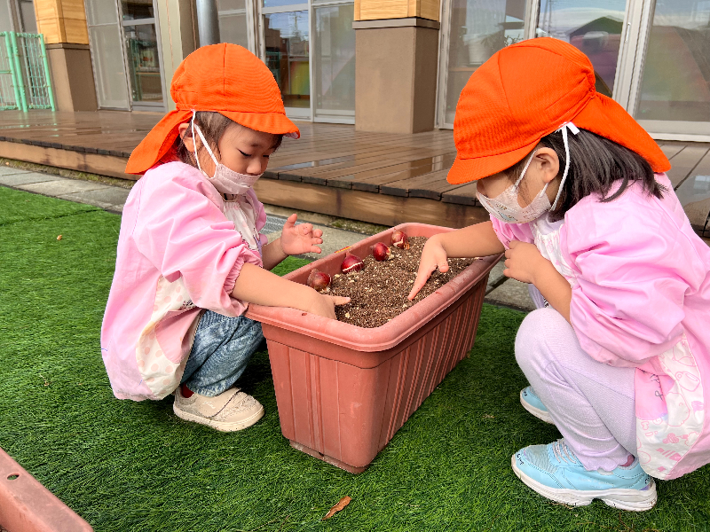 11/27(木)チューリップの球根を植えたよ(年中組)