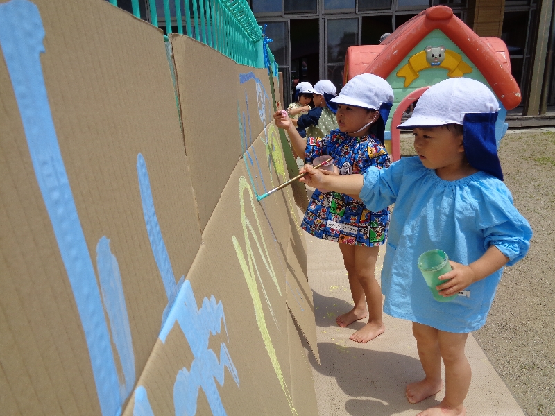 小さな体で絵の具の筆を右に左に上に下に大きく動かし、笑顔いっぱいの様子が見られ嬉しく思いました![]()