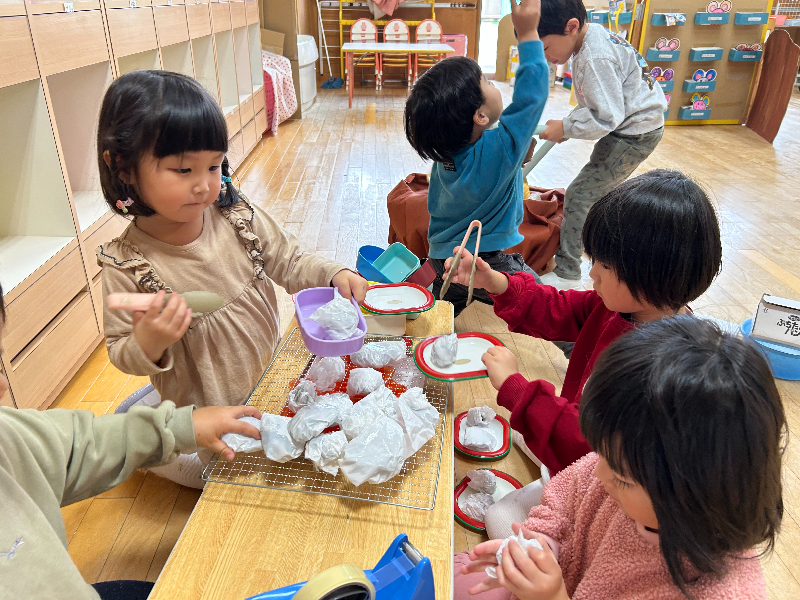 中にはリサイクル品で小道具を作り、自分たちで劇遊びを楽しむ姿も見られました