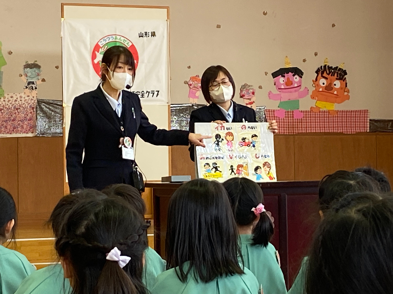 今年度最後のかもしかクラブが行われました。指導員さんのお話を聞いたり、係の方のクイズに答えたりしながら交通ルールについて楽しく学ぶことができましたストップの約束もとても上手にできていました