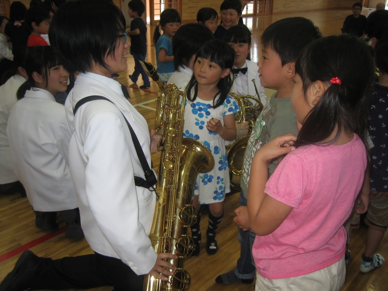 6月9日(木)に、年長組さんが鶴岡東高等学校の吹奏楽部の演奏を聴きに行きました![]()